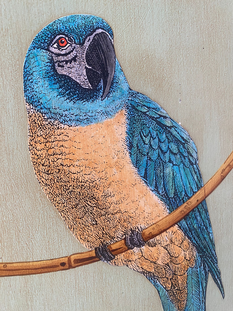 Vintage Decoupage Painted Bamboo Parrot Butterfly Screen
